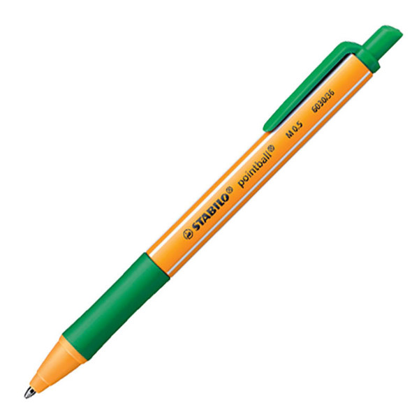 De Stabilo Pointball balpen in groen heeft een fijne punt van 0,5 mm voor nauwkeurig en helder schrijven. Ideaal voor notities, schetsen of gedetailleerd werk.