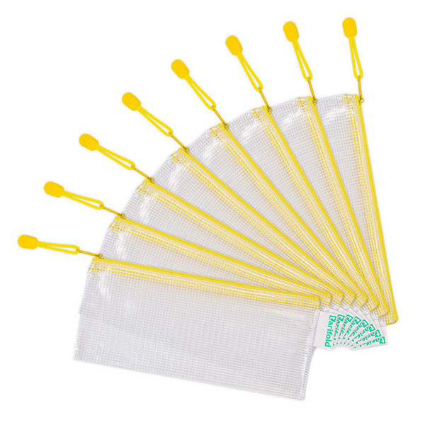 De Zipper opbergtas met gele rits is een perfecte oplossing om je documenten of kleine voorwerpen veilig op te bergen en gemakkelijk mee te nemen. Of je nu op kantoor werkt, in de fabriek bent, thuis een opbergoplossing zoekt of op school bent, deze tas is de ideale keuze. Ook uitstekend voor op reis!