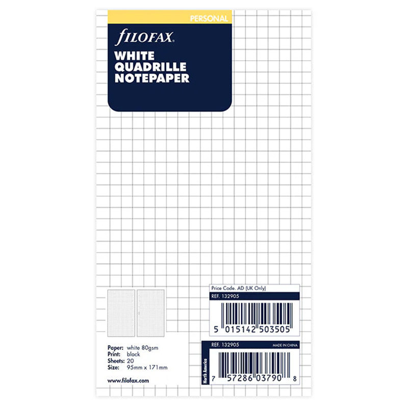 Met de Filofax Personal Geruit heb je altijd de perfecte basis voor al je notities. Een praktische, stijlvolle en veelzijdige navulling die niet mag ontbreken in je Filofax – ideaal voor dagelijks gebruik, op kantoor, school of thuis.