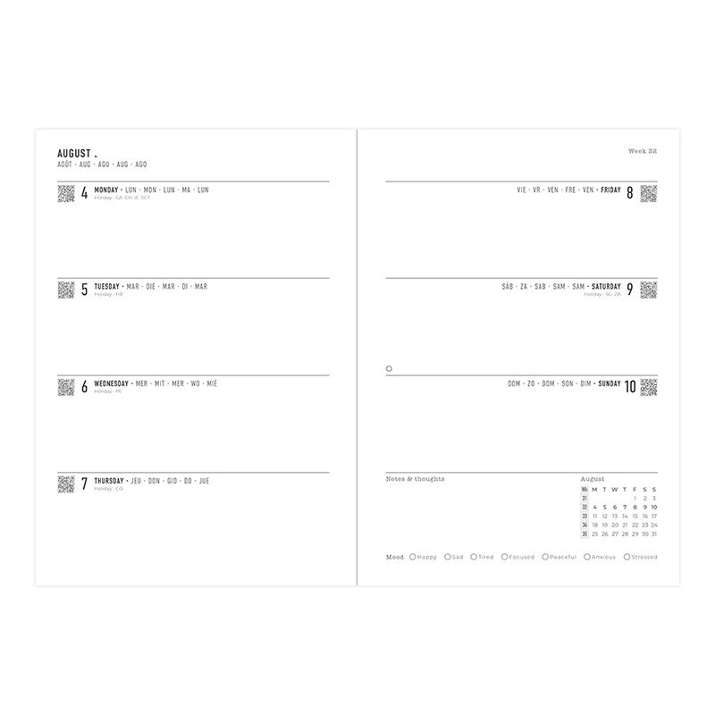 • Indeling: Weekoverzicht, blanco schrijfvakken