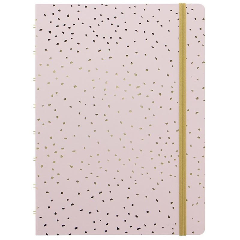 Ontdek de perfecte combinatie van elegantie en functionaliteit met de Filofax Notebook A5 Confetti Rose Quartz. Dit stijlvolle navulbare notitieboek met speels confetti-ontwerp en moderne grijze tint is ideaal voor het maken van notities, plannen, schetsen of journaling. Dankzij het slimme ringmechanisme kun je eenvoudig pagina’s toevoegen, verwijderen of herschikken – precies zoals jij wilt.