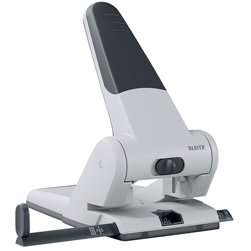 De Leitz 5180 is vervaardigd uit aluminium persgietwerk en voorzien van een antisliphandvat voor een stevige grip. De duidelijke papieraanleg tot A3-formaat zorgt voor nauwkeurig perforeren bij elk gebruik. Dankzij de geïntegreerde hefboomvergrendeling bespaar je ruimte bij het opbergen.