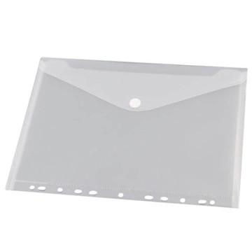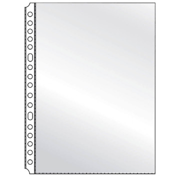Plastic tas voor 2-, 4- en 23-rings banden. Polypropyleen. Copysafe. De bovenzijde is open voor het in- en uithalen van documenten. Met versterkte ponsgaten voor opberging in mappen, ringbanden en ordners. De tas heeft eeen glad oppervlak.